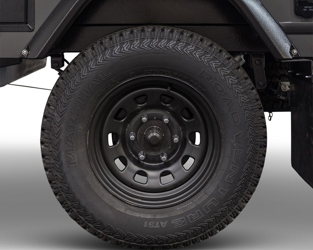 - 235/75R15 Marshal AT 51 Tyres on 15″ Black Steel Wheels
