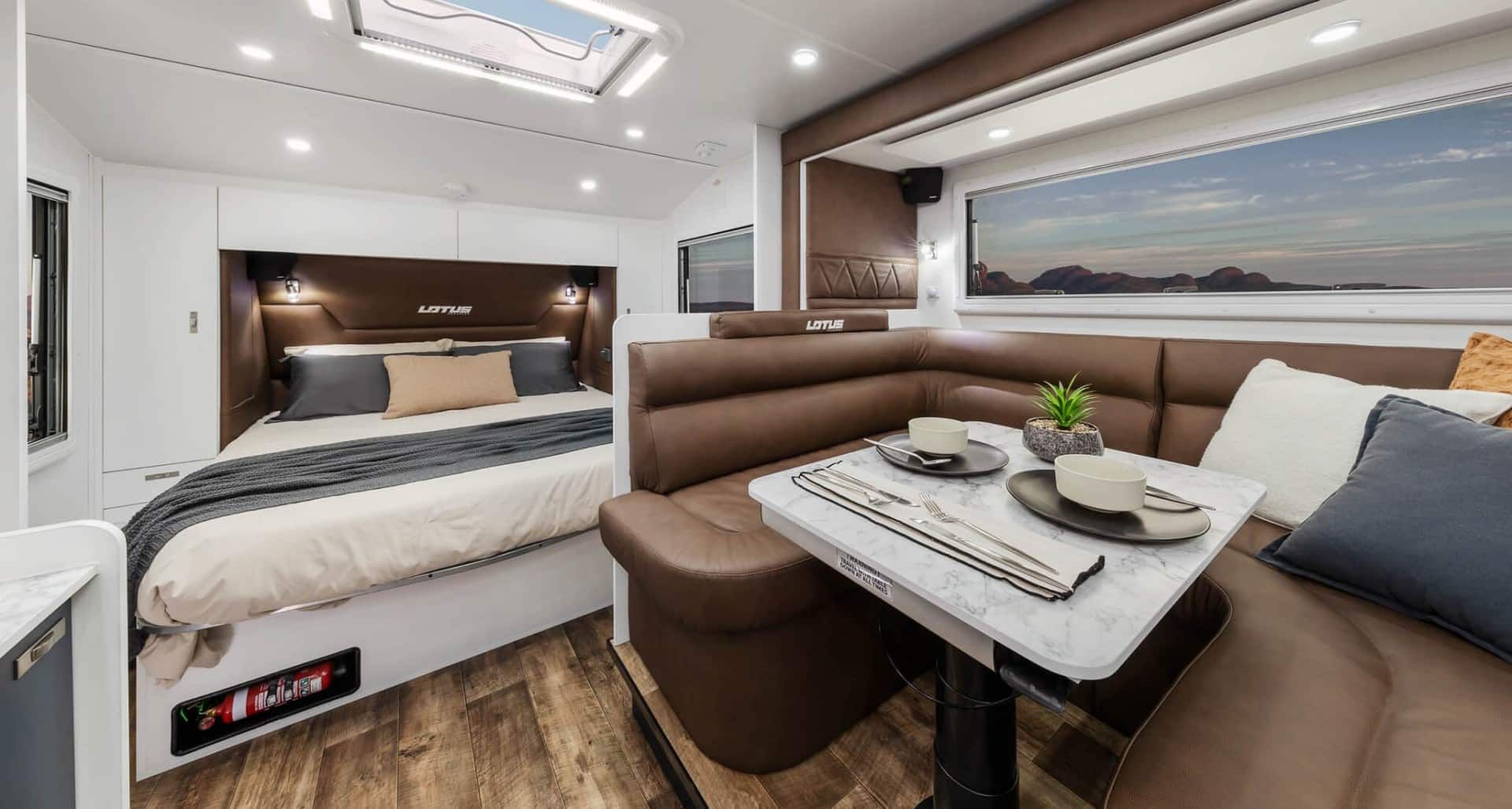 - Stylish, modern furniture with Lotus Caravans unique interlocking cabinetry